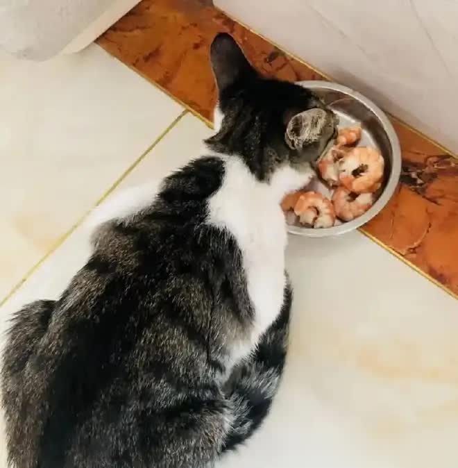 而@风音 的猫咪更显暖心:某次主人将剥好的虾留给睡梦中的它,小家伙醒来后竟叼着一只虾送到主人房间。